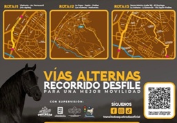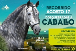 Este jueves 11 de diciembre se realiza el Desfile a Caballo en Dosquebradas, razón por la cual las autoridades de tránsito del municipio anunciaron los cierres viales y las rutas alternas durante el evento que recorrerá diferentes vías a partir de las 2:00 p.m., en el marco de las Fiestas del Progreso 53.