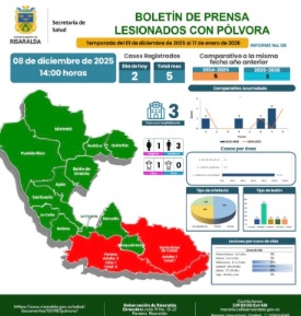 La Gobernación de Risaralda, a través de la Secretaría de Salud, entrega a la opinión pública el balance departamental de lesiones ocasionadas por el uso de pólvora pirotécnica durante la temporada del primero de diciembre de 2025 al 7 de diciembre de 2025,